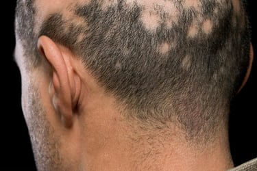 A alopecia areata é uma condição autoimune (o próprio corpo "se ataca") que causa a perda de cabelo em áreas específicas, formando pequenas "falhas" circulares no couro cabeludo, sobrancelhas, barba ou outras partes do corpo.